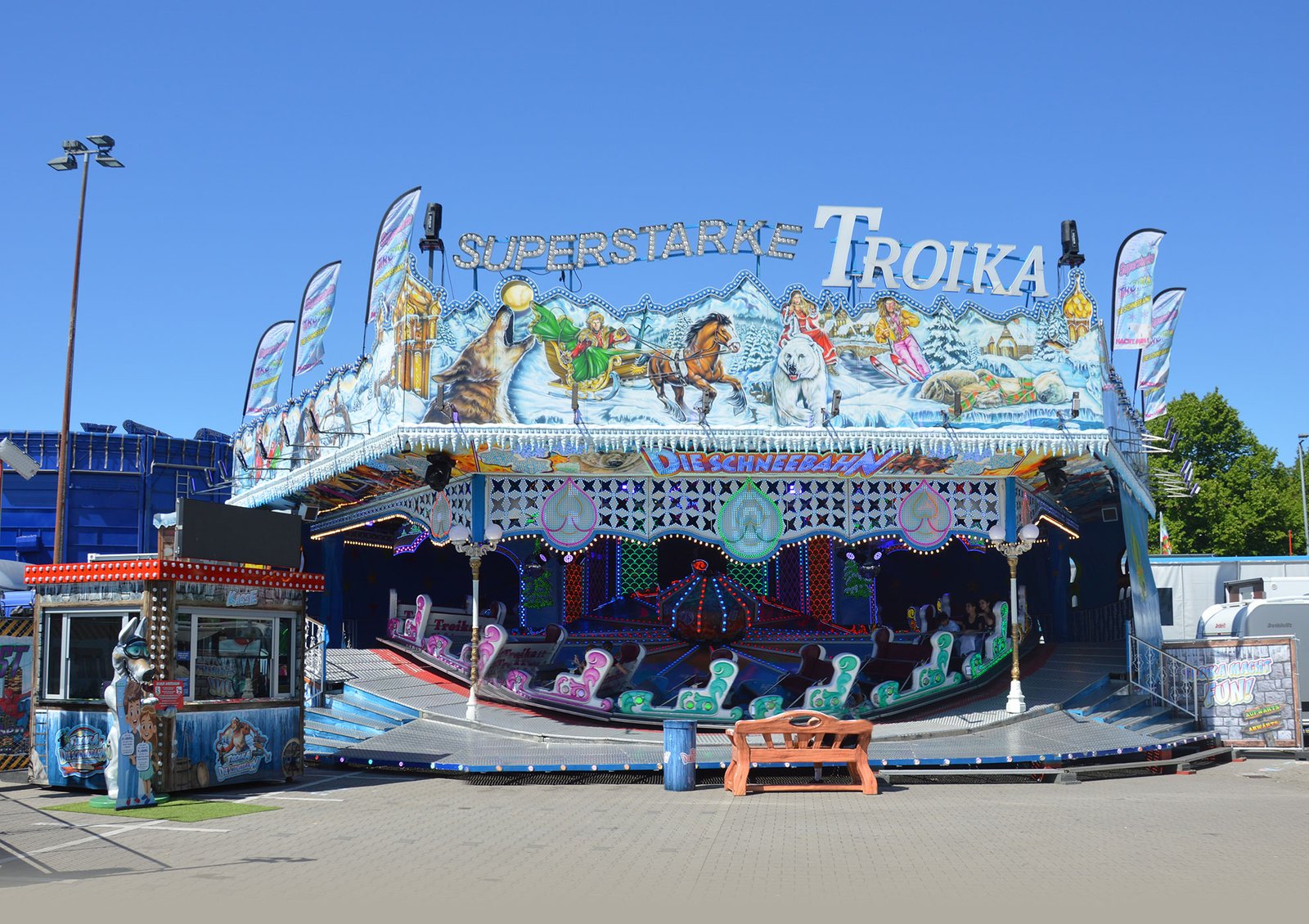 Das liebevoll gestaltete Design des einzigartigen Fahrgeschäftes TROIKA mit seiner winterlichen Kulisse schafft eine zauberhafte Atmosphäre, die nicht nur im heimischen Bremen sondern deutschlandweit und sogar bis nach London für Begeisterung sorgt.