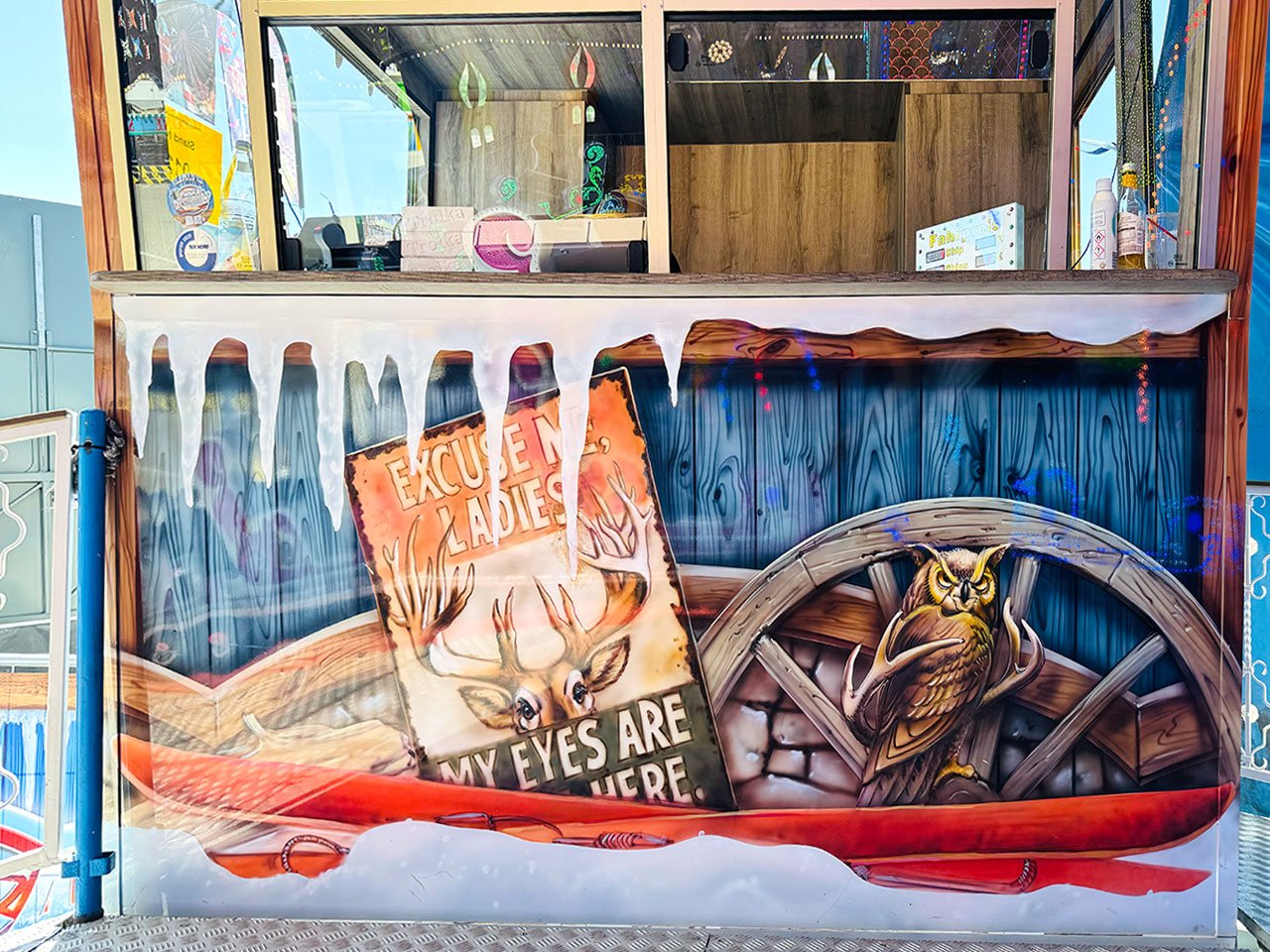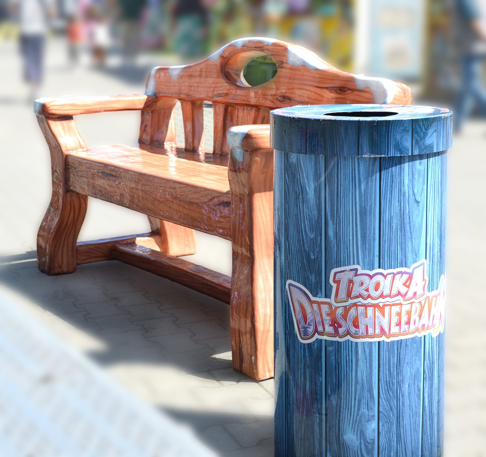 Die aufwendig bemalten Fassaden des Geschäfts, bis hin zum Kassenhaus, der Besucherbank und sogar den Mülleimern runden das stimmige Gesamtbild ab und machen die Schneebahn zu einem echten Unikat!